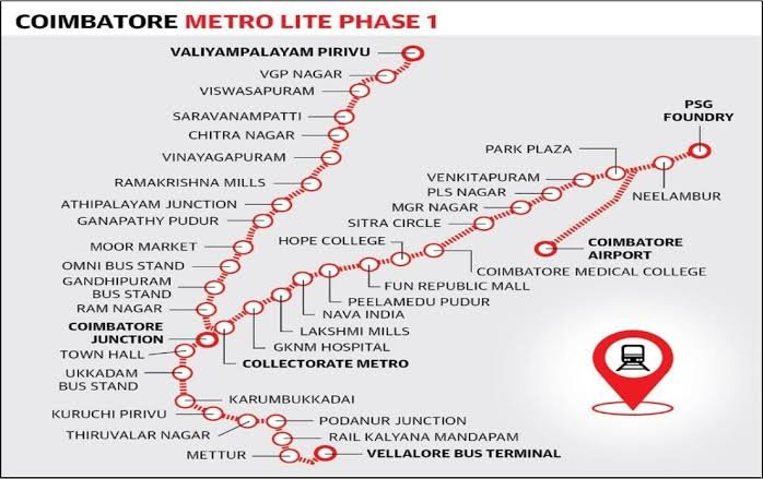 With construction work of the 10.1 km flyover on the Avinashi Road underway, the CMRL plans to build the Metro Rail by acquiring land on the northern side of the Avinshi Road (PRS Grounds, Peelamedu Police Station, Coimbatore Medical College), starting from the VOC ground to Neelambur.
